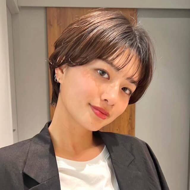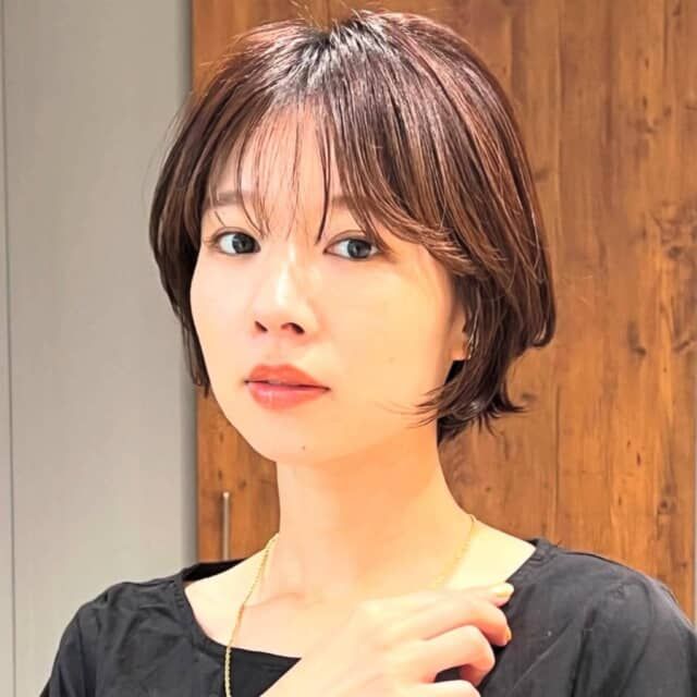 レイヤーショートの魅力は、顔周りの毛流れで印象を自在にコントロールできること。頬骨のラインに沿ってレイヤーを入れるとフェイスラインをカバーしつつ、すっきり小顔に見せてくれます。