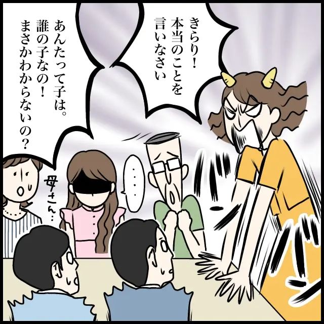 すると、「きらり!本当のことを言いなさい。あんたって子は・・誰の子なの!まさかわからないの?」ときらりちゃんにお母さんが詰め寄ると、