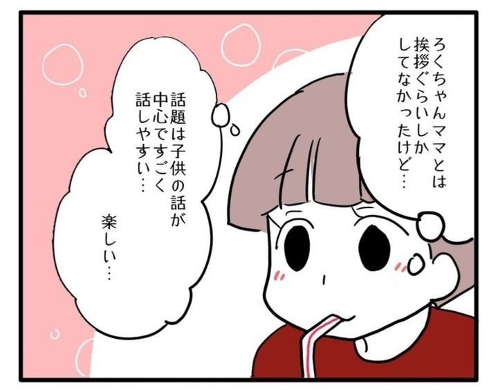 子どもを通じて知り合ったママ友同士なので、話題が「子どものこと・育児のこと」になるとナナちゃんママも話しやすそうでした。どんなことをきっかけに仲良くなるかによって、相手の人と話す内容は変わってきますよね。