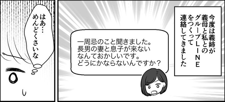 義母からのLINEに続き、義姉からも「一周忌に来ないなんておかしい」と連絡がきました。