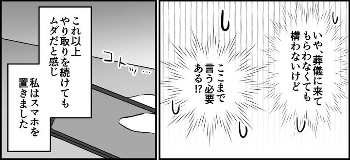 しかも義母は「あなたの親の葬儀には出ません」とまで言ってきたのです。