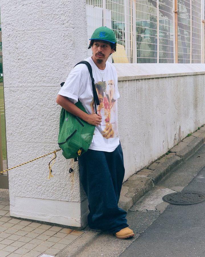 3. 【スナップ】ブラックカルチャーの匂いがするサイジングとアイテム選び。際立つキャップとバッグの色ハメ術