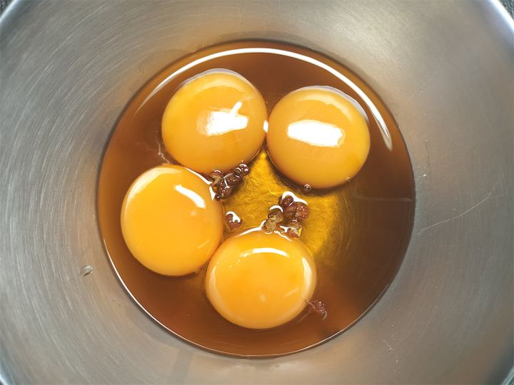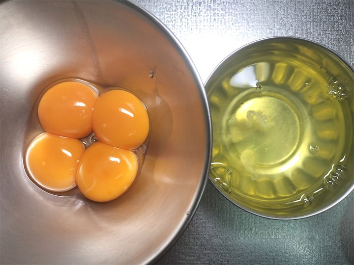 4. ボウルに黄身を入れ、2の合わせ調味料を加えて1時間浸けます。