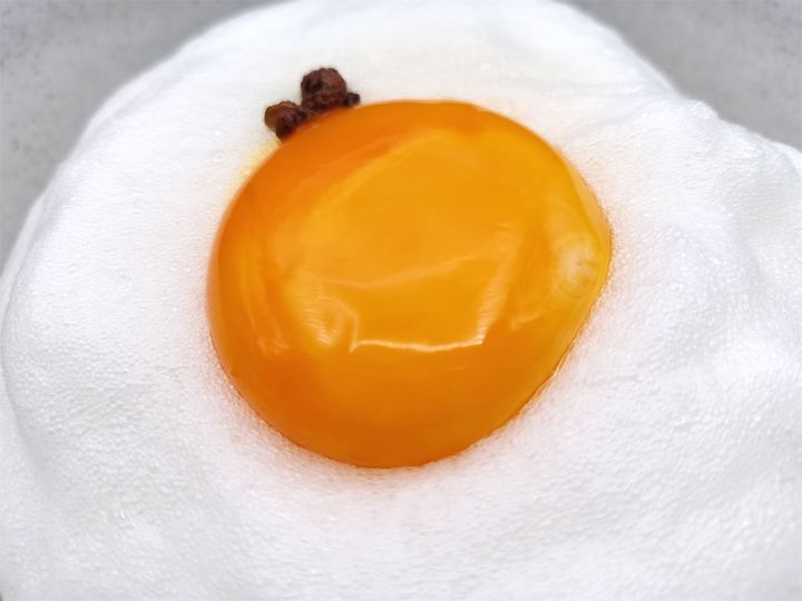 9. メレンゲの中央に黄身を乗せて、出来上がりです。