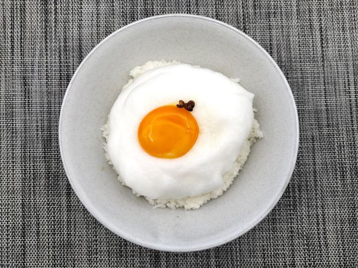 急いでタレをかけ、メレンゲ状の白身と黄身を乗せてすぐに口へ運んでみると…。メレンゲのフワフワとした非常に軽い食感と、炊き立てのご飯がゴマ油の香りと黄身の濃厚さに包まれ、やさしいタレの味を感じながらも米と卵のおいしさが際立つ卵かけご飯が出来上がりました。砂糖は多めで甘さを感じますが、花椒が邪魔をしない程度のアクセントとなっていて、とてもふわふわで食べやすく仕上がったのが印象的でした。