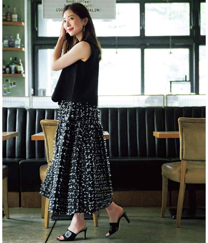 平日のソロTIMEこそオシャレしてる感を満喫できるボリュームスカートを。歩くたびに揺れるリボンツイードが着こなしを品よく華やかに格上げ。Allブラックならやりすぎ感なく大人な甘さに仕上がります。