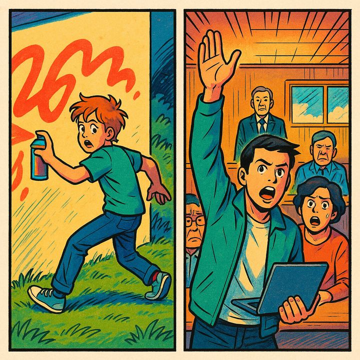 事件が起きたのは、先月のことです。地域の集会所の壁に、スプレーで落書きがされるという被害がありました。誰もが鈴木さんの息子さんを疑いましたが、もちろん決定的な証拠はありません。鈴木さんも「うちの子はやっていません!」と、いつもの調子で言い張るばかりでした。