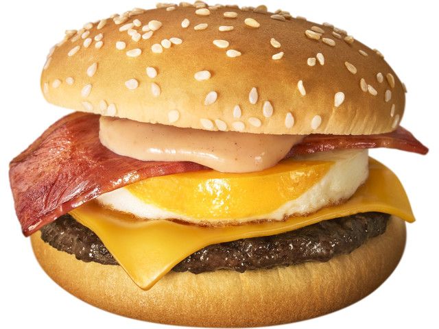 秋の定番「月見バーガー」に、コクのあるチェダーチーズを加えた一品。 月に見立てた国産たまごと、つなぎの入っていないジューシーな100%ビーフパティにスモークベーコンをのせ、チーズ好きにはたまらないとろけるチェダーチーズと、よりクリーミーな味わいに進化したトマトクリーミーソースの絶妙な組合せをお楽しみください。 (店舗事に終売時期が異なる場合がございます)