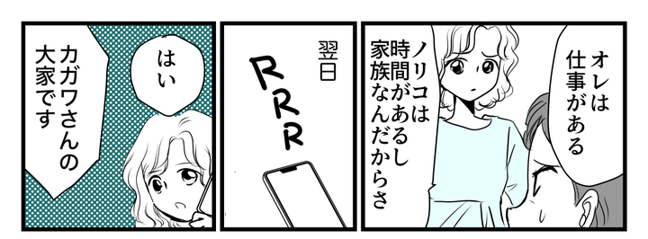 その夜、帰宅したヒロナリにカガワさんのことを話しました。しかしヒロナリは、「母や妹にも任せろと言ってしまったから、うちで対応しよう」と言うのです。私はヒロナリの言葉に納得できませんでした。でもヒロナリと結婚した時点で、義実家に関わるあれこれを無視できない立場になったとも思い、私はそれ以上何も言えませんでした。すると翌日から、私宛に電話がバンバンかかってくるようになりました。