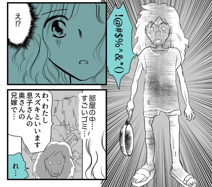 義妹の旦那さんの母・カガワさんは、廃墟のようなアパートに住んでいます。