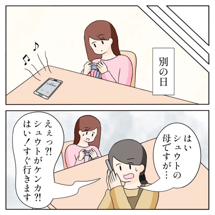 しばらく経ったある日、私がリビングで単語帳とにらめっこしていると、母のスマホが鳴りました。「えぇっ!?シュウトがケンカ!?はい!すぐ行きます!」と母は言ってすぐに出かけていきました。