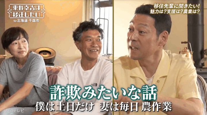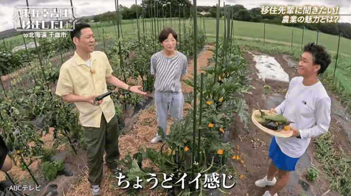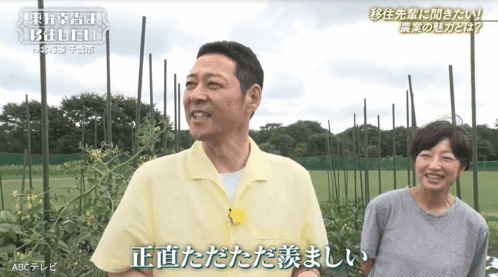 なお、この様子は、9月7日に放送された特番『東野幸治は移住したい ~北海道千歳市編~』(ABCテレビ)で紹介された。移住夫婦いわく千歳市は、「それほど田舎でもなく、でも田舎の良さもあってちょうどいい」「最高です」という。夫婦の話を聞き、あこがれの収穫体験をした東野は、「なんかケチつけようと思ったけどないし、正直ただただうらやましい!」とのことで、千歳市に惹かれたようだった。