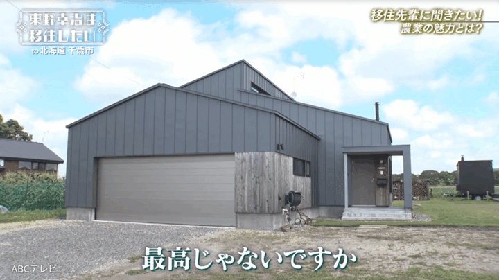 新千歳空港から車で14分ほどの場所には畑が広がっており、比較的新しくてオシャレな住宅がポツポツと建っている。そこから車で約10分の場所にはスーパー、約15分の場所には総合病院があり、ここでの暮らしは快適そうだ。そんな場所にあるグレーの洗練されたデザインの住宅に住んでいるのは、苫小牧市出身の夫婦だ。2人は、24年前に東京で結婚。2人の子宝に恵まれ、23年間東京で暮らし、2年前に千歳市へ移住した。