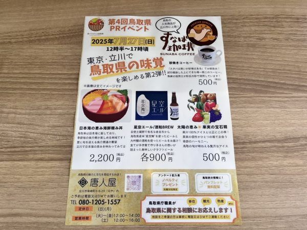 こうしたイベントでは鳥取県の名産品、例えば『スタバは無いが砂場はある』でお馴染みの「すなばコーヒー」が飲めるなどするそうです。き、気になるっ!