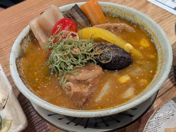 たっぷり夏野菜とカレーの香りが食欲をそそり、更にお酒がすすみます。