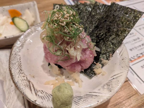たくあんのパリパリとまぐろの旨味。間違いないおいしさです。