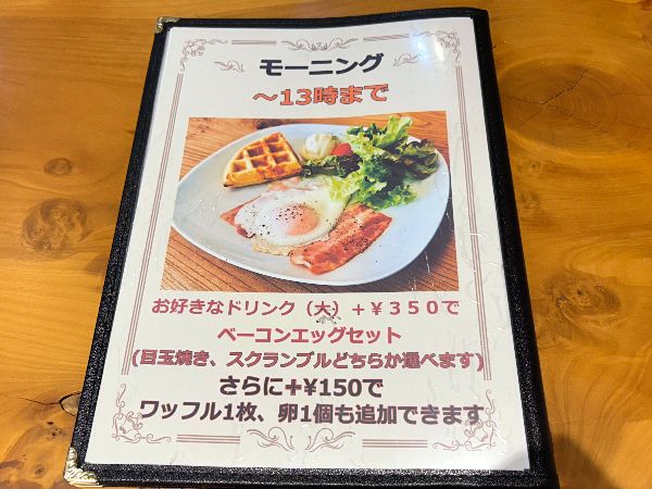 モーニングメニューは、開店から13時まで注文できます。この日は12時過ぎに訪れましたが、まだモーニングが注文できる時間帯だったのでオーダーしました。