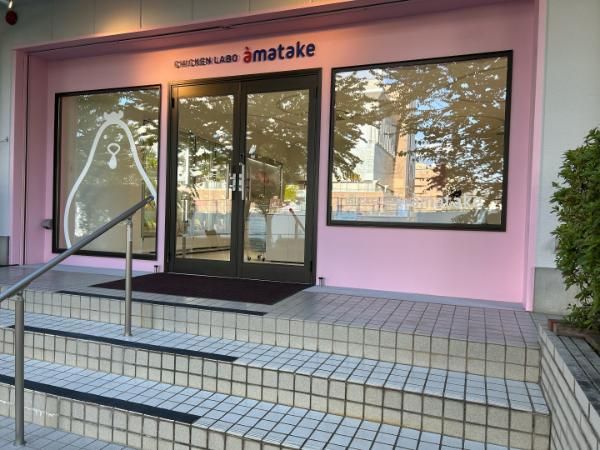 かわいらしい鶏のイラストと、ピンクの店構えが目をひきますね。店名は「CHICKEN LABO amatake(チキンラボ アマタケ)」。