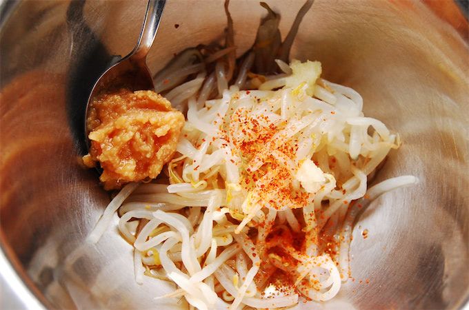 みそ味のもやしはちょっと新鮮。にんにくとゴマ油がみそともやしをうまくまとめてくれています。