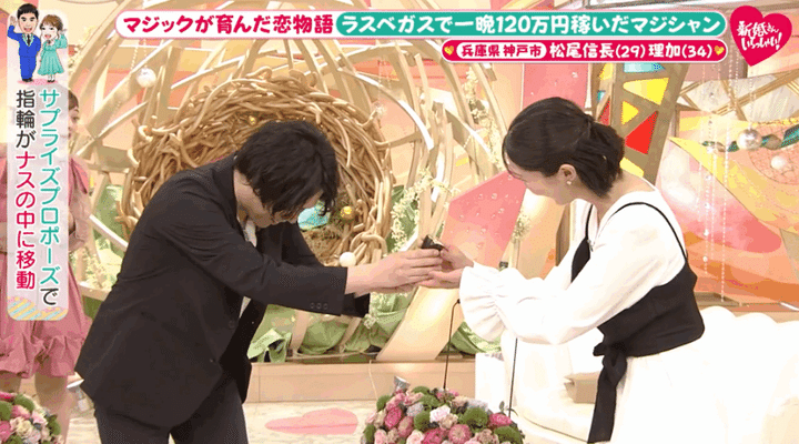 せっかくの機会だからと、夫は感謝の言葉をのべつつ『プロポーズマジック』を披露する。