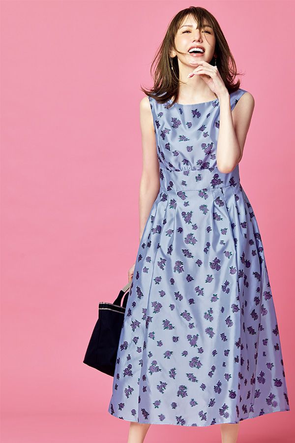 トッカらしい王道レディなシルエットに、大人好みのフラワージャカードをちりばめた主役級ドレス。ラフに持てるキャンバ ストートをあえてぶつけて、ウワテなギャップを楽しんで。
