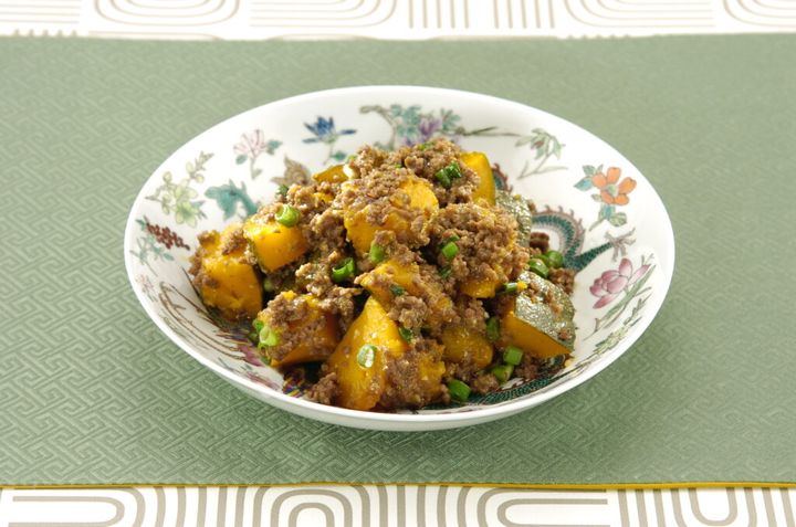 「かぼちゃと牛挽肉の煮込み」