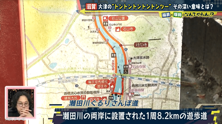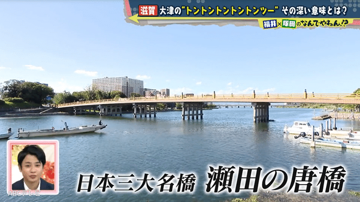 京都・滋賀に詳しい以倉敬之さん(京都のミニツアー・まいまい京都代表)いわく、「たしかに大萱の浜は近江の流通に非常に重要やった」そうだが、米とトントントントントンツーは無関係とのこと! 以倉さんは塚田と福井アナに、瀬田川ぐるりさんぽ道へ行くように指示し、「“はし”の周辺を調査すればNDYならきっと分かります」とアドバイスした。