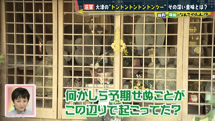 滋賀県大津市大萱(おおがや)には、琵琶湖畔の近くに暗号のようなもの“トントントントントンツー”が刻まれた石垣がある。暗号が意味するのは誰かのSOSなのか、それとも……? この謎に、A.B.C-Zの塚田僚一とABCテレビの福井治人アナウンサーのNDYコンビが挑んだ。