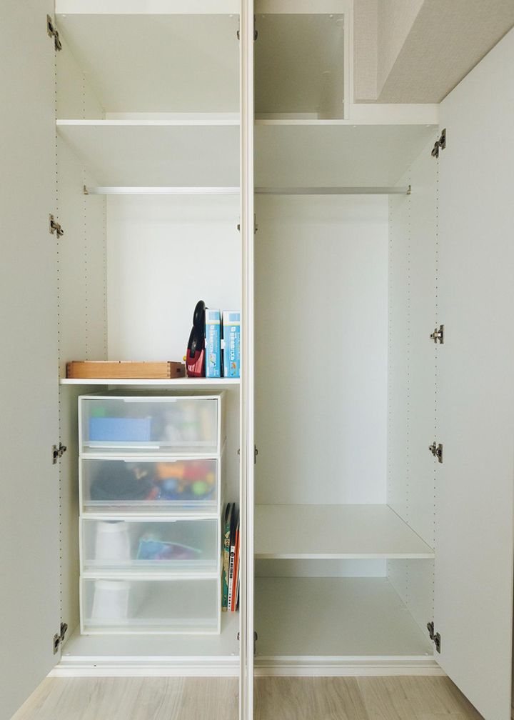 「誤飲や転倒の危険が減ります。そして管理の手間が減り、子ども自身も片づけに取り組みやすい。どんな環境であっても子どもはそのへんにあるもので遊ぶため、多種多様なおもちゃは必要ないと思っています。服も同じで、わが家は安価な服を半年で着倒して総買い替え。持ちすぎを防ぐことができ、サイズアップにもスムーズに対応できています」