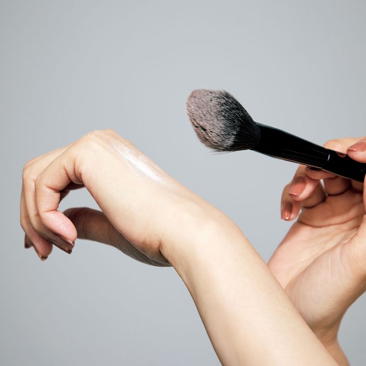 「皮脂を吸着しすぎてダマにならないよう、皮脂を抑えつつも保湿力が高い微粒子のパウダーを選びます。色はルーセントか肌に馴染む薄色のもの。均一につけやすいプレストがベター」