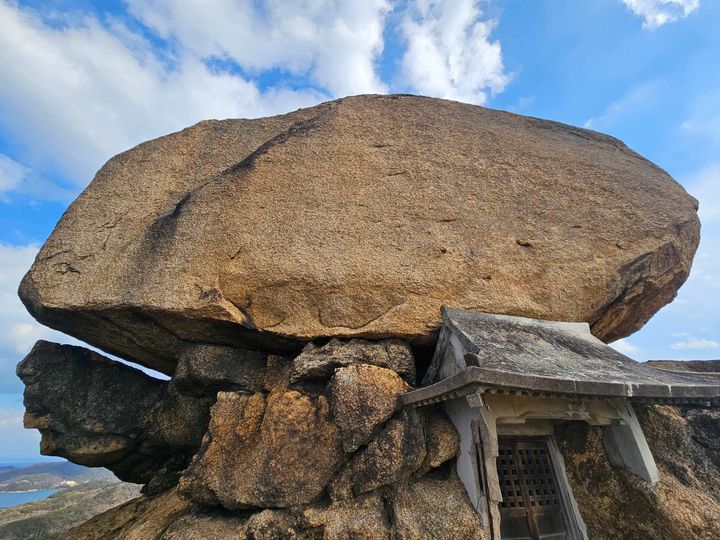 小豆島では、地元のおじいちゃんから聞いたおすすめスポットに行ってみたこともある。「重岩」という山頂に重なりあった大きな岩。自然のものか人工的なものなのか、解明されていない、不思議スポットだ。