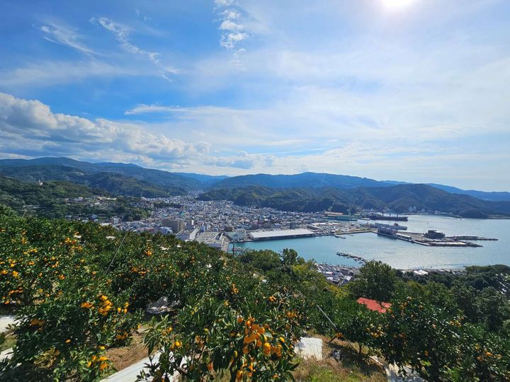 八幡浜市のみかん畑と漁港