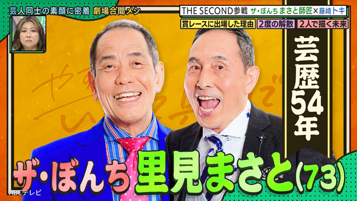 なんとその翌年にまさとは、おさむとともにザ・ぼんちを再結成。解散から16年後の出来事で、所属する吉本興業の声掛けがきっかけだった。それから2人は漫才の技術をさらに磨き上げ、後輩たちに混ざって72歳の時に漫才賞レース『THE SECOND~漫才トーナメント~2024』に挑戦。翌年の2025年大会で、なんとグランプリファイナリストにまで上り詰めた。