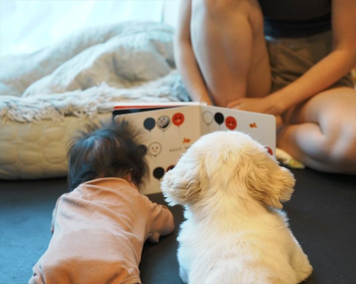 赤ちゃんの成長を近くで見守る優しいお兄ちゃん!一緒に絵本を読むペキニーズに反響「本当にいいお兄さんですね」「二人ともかわいすぎ」