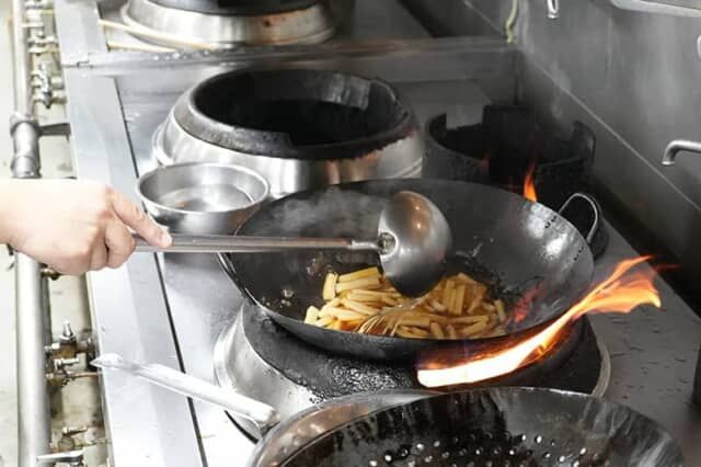 その日に商品にするメンマを中華鍋で味付けして完成。化学調味料を一切使わず、ホテルクオリティのメンマが出来上がります。