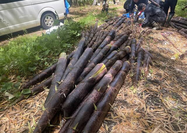 人の手が入らない “放置竹林” は、日本全国で問題になっています。竹は繁殖力がたいへん強く、周辺の山や森林を浸食し生態系を変えてしまうほか、竹の根が浅く土砂災害を引き起こす恐れがあるからです。そんな竹を有効活用するのが今回のプロジェクト。メンマに使うのは2メートルほどに伸びた若い竹で、食べる部分は約1メートルほどの部分です。