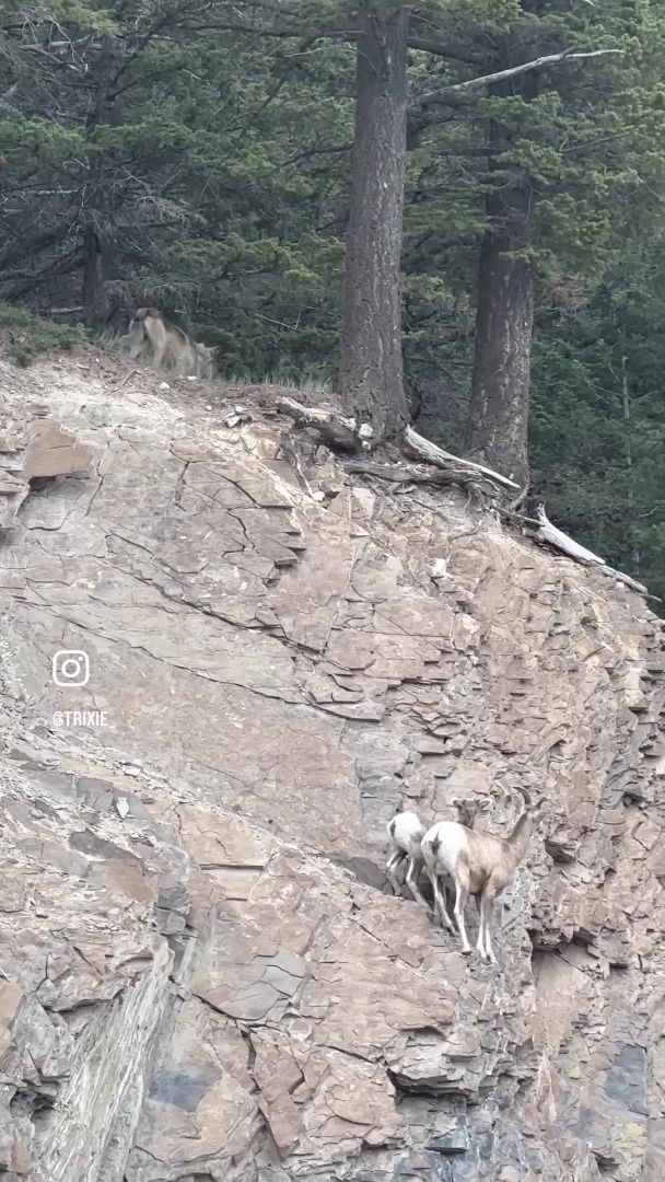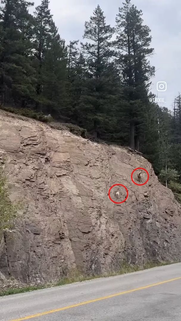 ご紹介する出来事は、カナダ・アルバータ州バンフで目撃されました。 その日、車で現場を通りかかった撮影者さんは、2頭のヤギを発見しました。