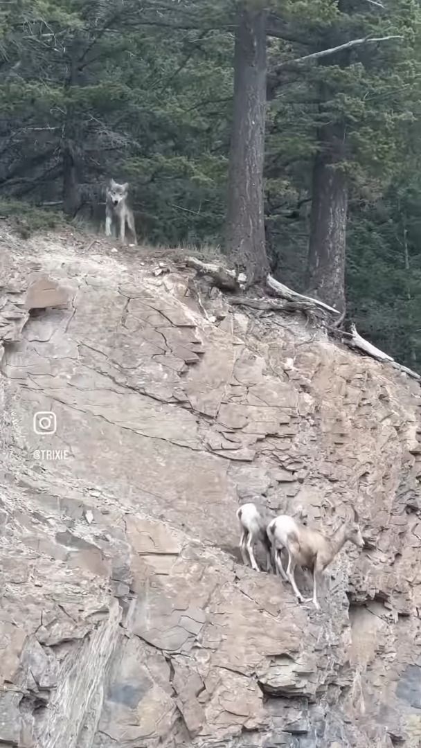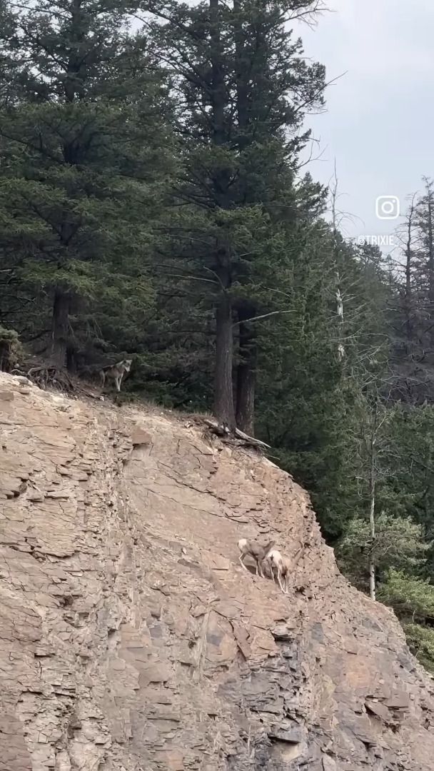 そう、ヤギたちは天敵のオオカミに追われて崖に逃げ込んだようなのです。