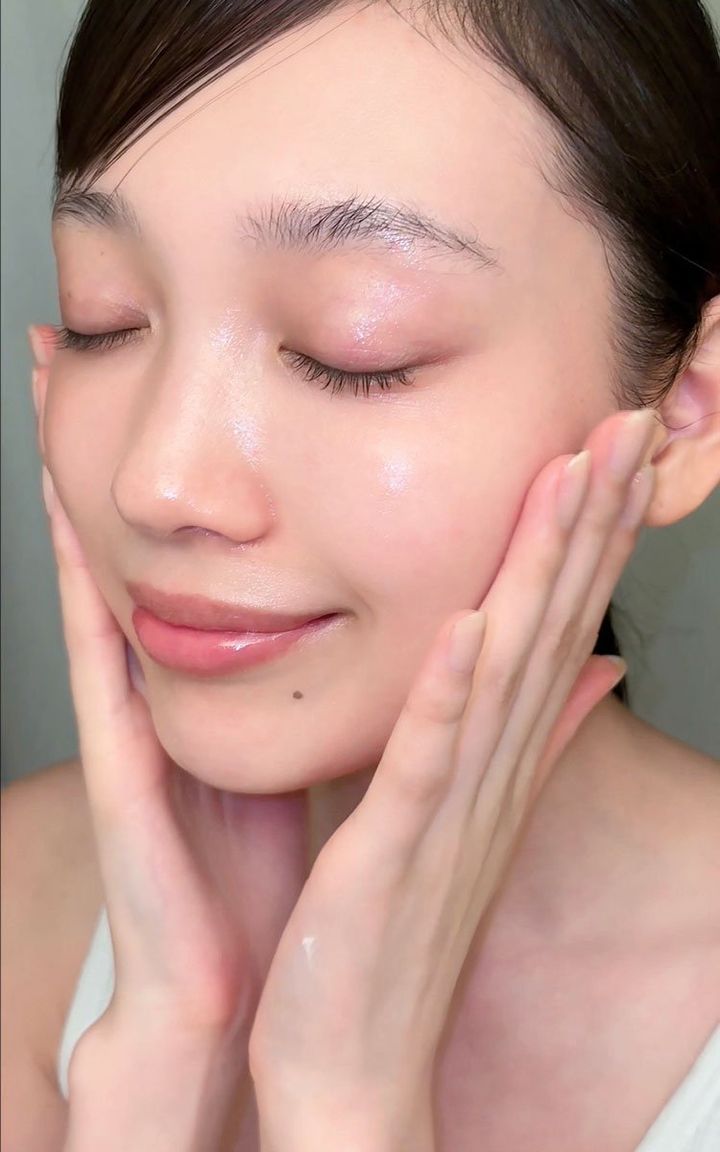 それは、適量を手に出したら、顔を斜め上にあげながらつけること。そうすると、姿勢が自然とよくなって猫背になりにくく、リンパの流れがスムーズになります。自然と呼吸も深くなり、リラックス効果 も!心が落ち込んで自律神経が乱れると、自分では気が付かないうちに呼吸が浅くなるので、深呼吸によって副交感神経が優位になり、肌の修復力もアップ♡