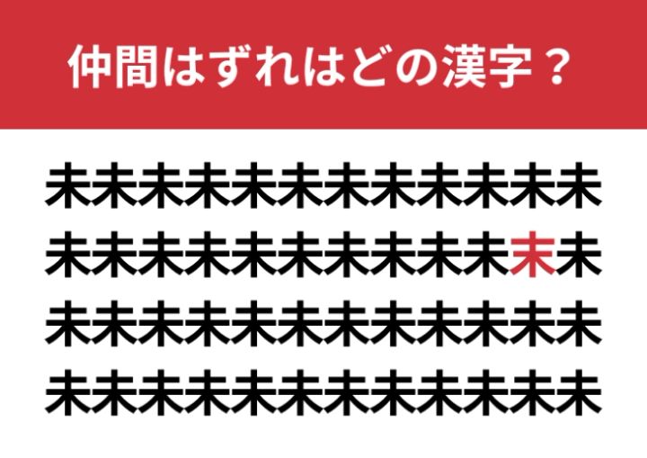 【漢字間違い探し】「未」の中に混ざった漢字は何?