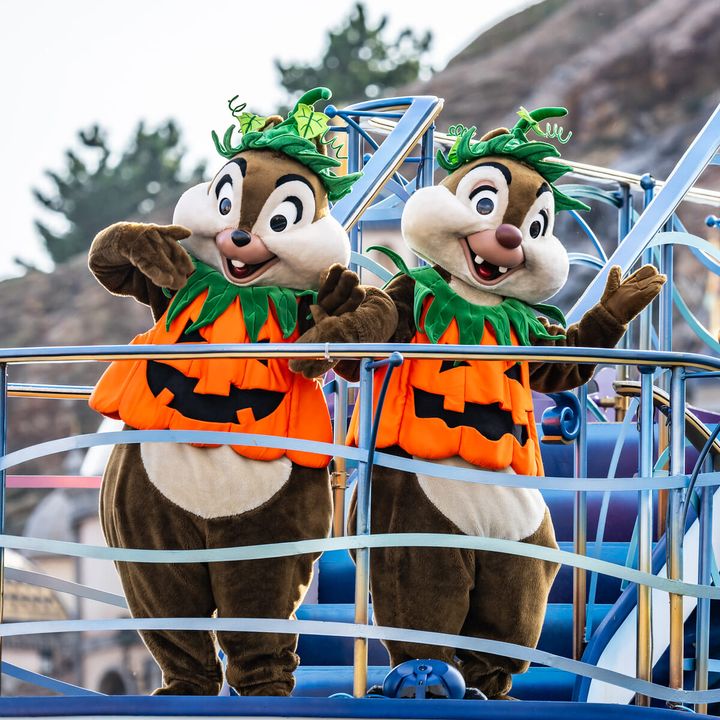 「チップ&デール」はおそろいのカボチャーコスチューム。