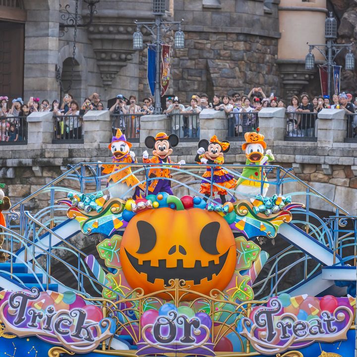 ハロウィーンらしいオレンジや紫を基調にしたコスチュームに身を包んだキャラクターたちに会えるのが魅力です。