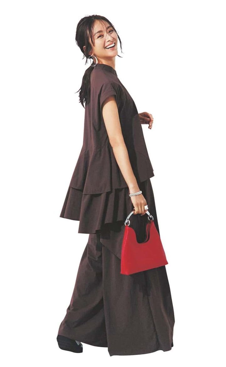 シャツ¥52,800(ヒュー・デイ・トゥ・イブニング)パンツ¥9,990(プラステ)ジャケット¥42,900(マルティニーク/マルティニーク ルミネ横浜)バッグ¥253,000(ボナベンチュラ/ボナベンチュラ カスタマーサポート)パンプス¥9,990(MANGO)メガネ¥48,400(アイヴァン/アイヴァン 東京ギャラリー)