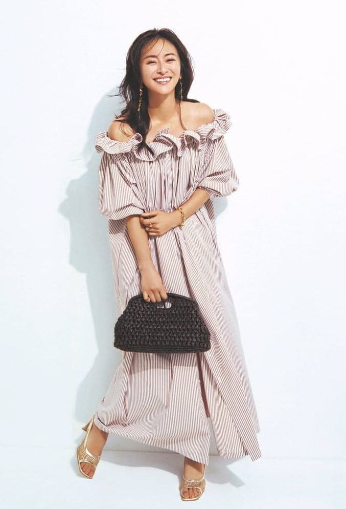 思い切った肩出しデザインのワンピースは、女友達との夜のお出かけにぴったり。注目を集めるのが得意な主人公タイプを意識して、肩出しに挑戦!華やかな小物を添えれば一層イベント気分が高まります。