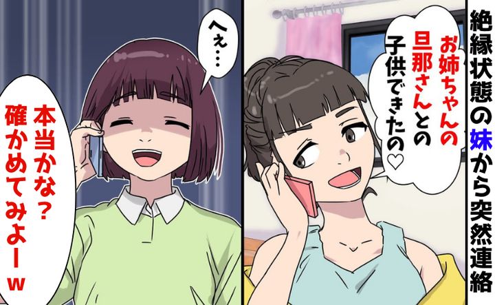 「お姉ちゃんの旦那さんとの子、妊娠した♡」ほぼ絶縁状態の妹から突然連絡。本当かな…真実を確かめると?