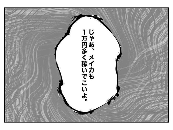 子どもが2歳になること、メイカは苦しい家計を少しでも改善させようとパートとして働き始めますが、それでも家計がとても楽になることはなく、毎日「お金がない」と暗い気持ちでイライラしながら過ごしているのでした。