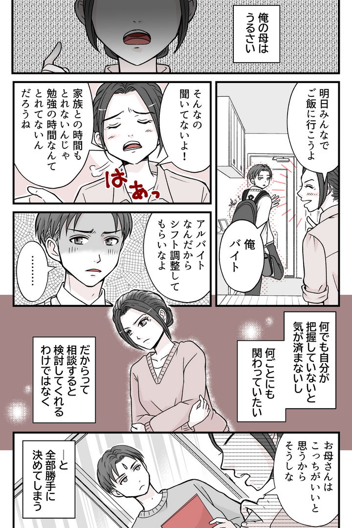 何でも自分が知っていないと気が済まないし、何ごとにも口出しをしたい母。そんな母に彼女ができたなんて言ったら、欠点ばかりを見つけて指摘してくることは目に見えています。そこで俺が反抗すると、言うことを聞くまで嫌味を言ってくることもわかりきっているのです。