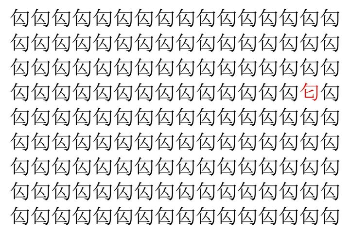 【脳トレ】「匃」の中に紛れて1つ違う文字がある!?あなたは何秒で探し出せるかな??【違う文字を探せ!】