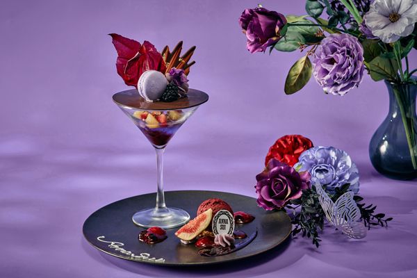 プレートには無花果やベリー、カシスアイスを添えて華やかに仕上げ、最後にANNA SUIのサインをあしらった、まさにアートのような一皿です。