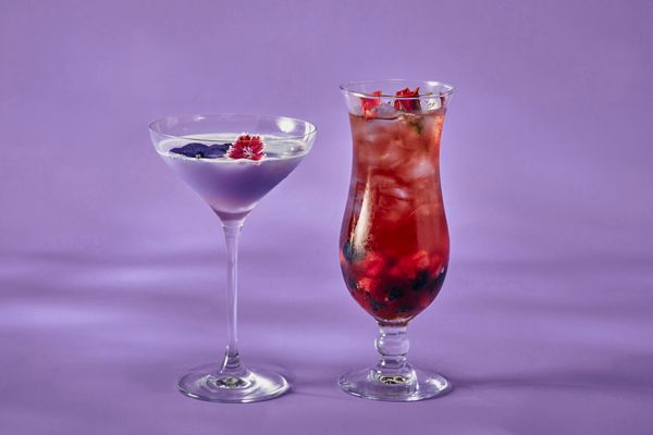 ANNA SUIを象徴するパープルカラーをまとった、ロマンティックな一杯。フローラルな香りをプラスし、2種類のエディブルフラワーを浮かべた幻想的なカクテルです。